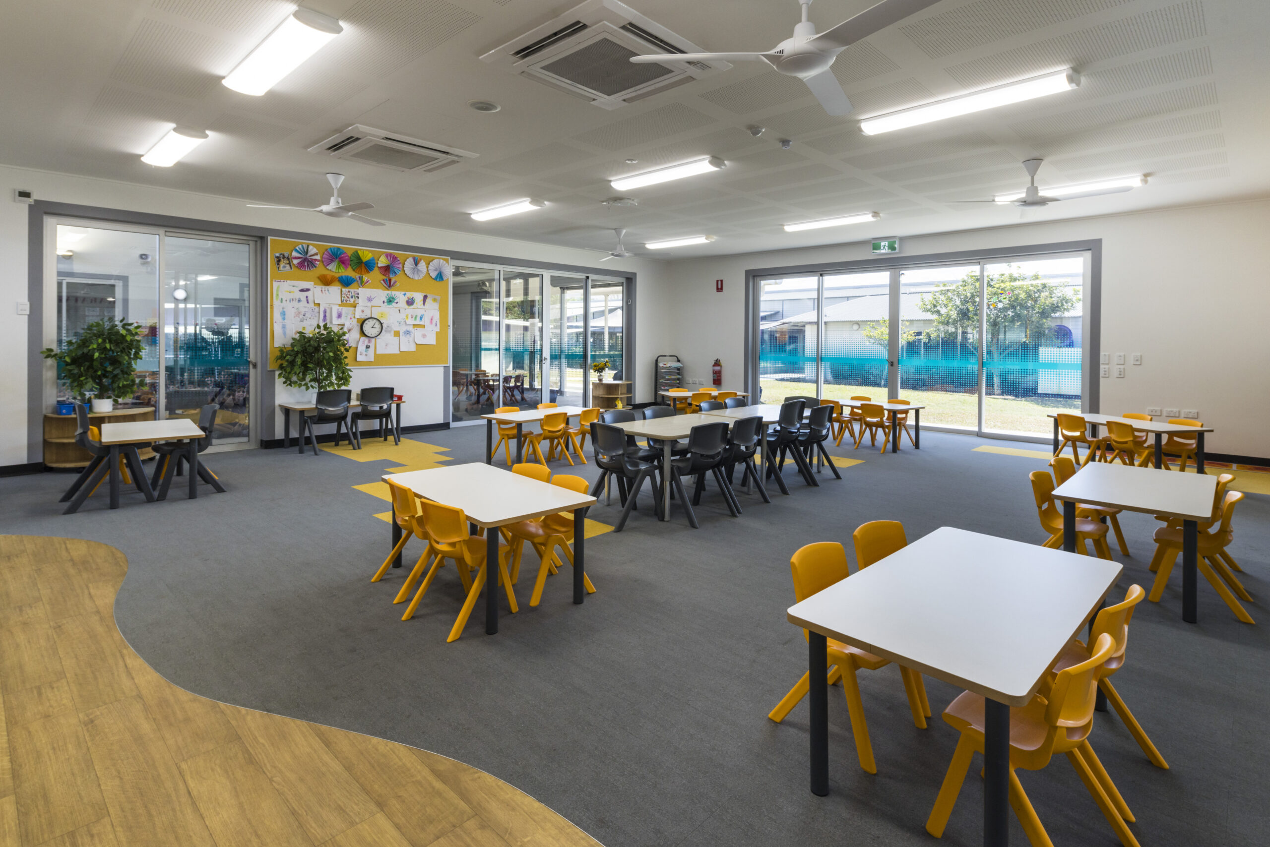 MacKillop OSHC building is a modern purpose built facility designed with both functionality and asethestics in mind. Located in beautiful Mount Peter, surrounded by the mountains and open skies. The new MacKillop OSHC Building has been designed to accommodate 135 children, with the facility offering before school care, after school care and vacation care. The building has the ability to have 4 separate rooms, or 2 large rooms for various activities and a large outdoor area.